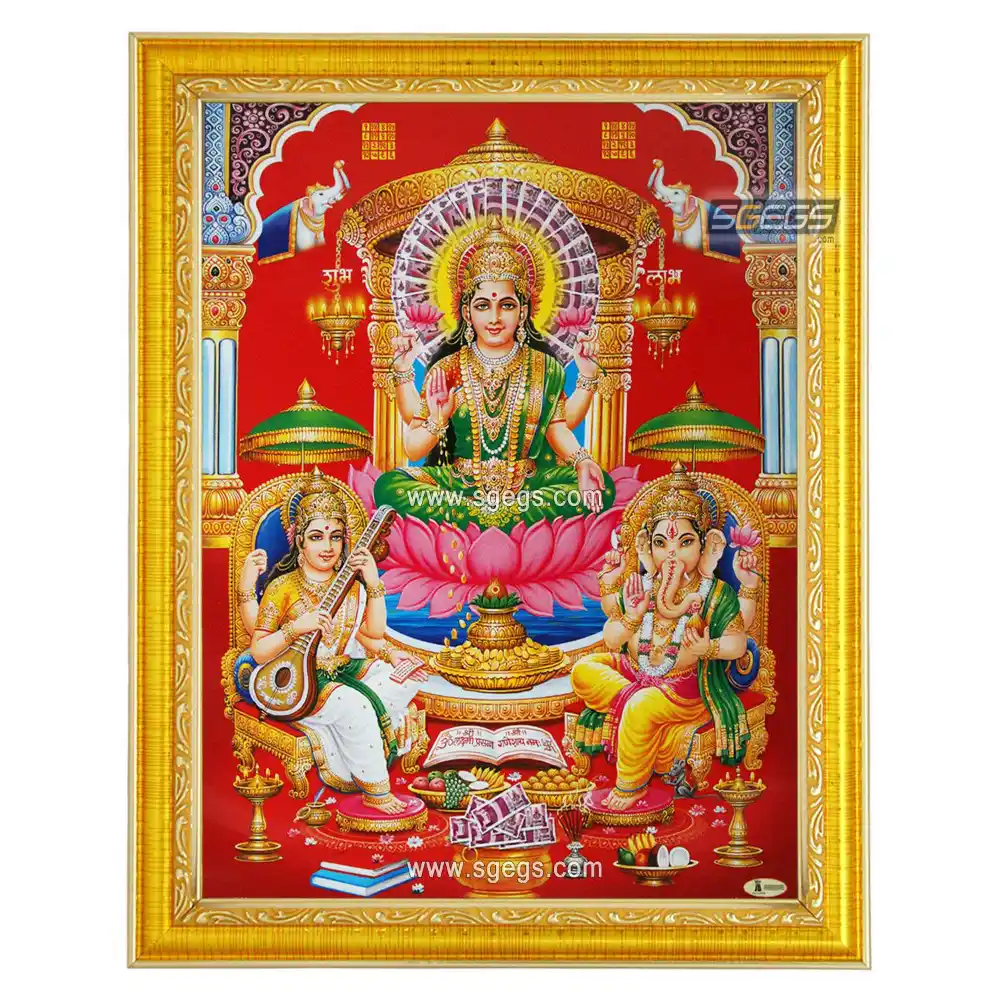Ganesh Lakshmi Saraswati Photo Frame, HD Picture Frame, Religious Framed Poster (SGEGS ID: 1997)