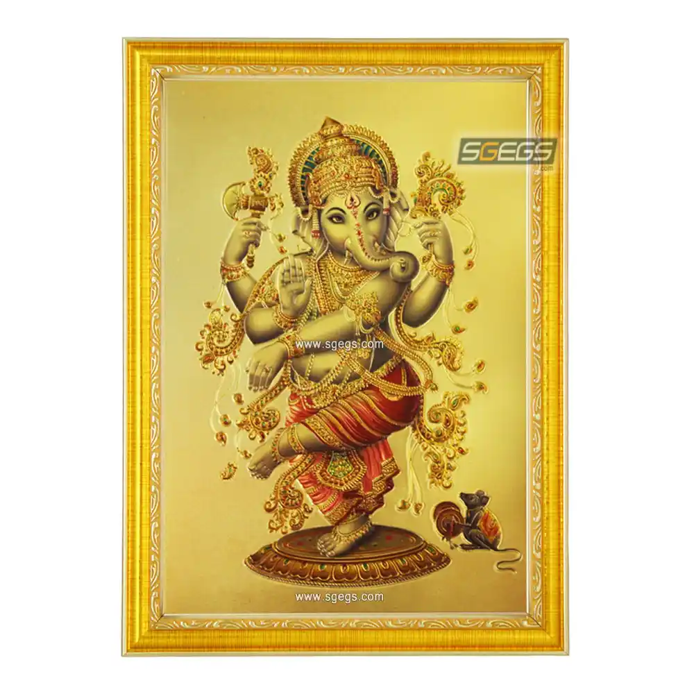 Dancing God Ganesha Photo Frame, Gold Plated Foil Embossed Picture Frame, Religious Framed Poster (SGEGS ID: 615)