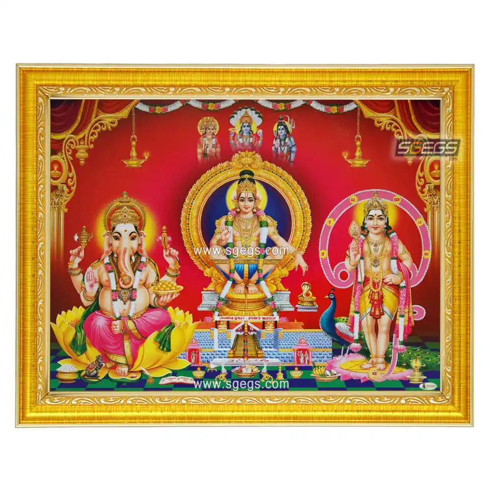 God Ganesh Ayyappan Kartikeya Photo Frame, HD Picture Frame, Religious Framed Poster (SGEGS ID: 2022)