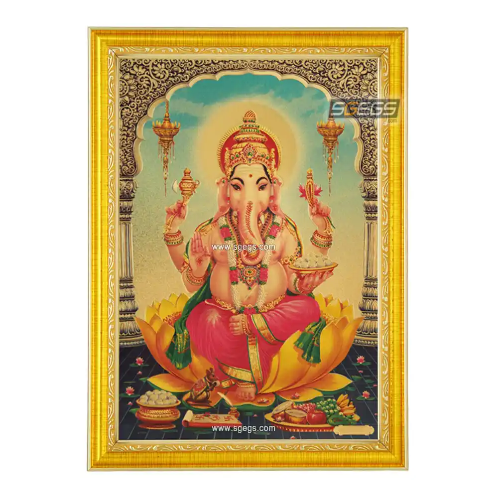 God Ganesha Photo Frame, Gold Plated Foil Embossed Picture Frame, Religious Framed Poster (SGEGS ID: 509) God Ganesha Photo Frame, Gold Plated Foil Embossed Picture Frame, Religious Framed Poster (SGEGS ID: 509)