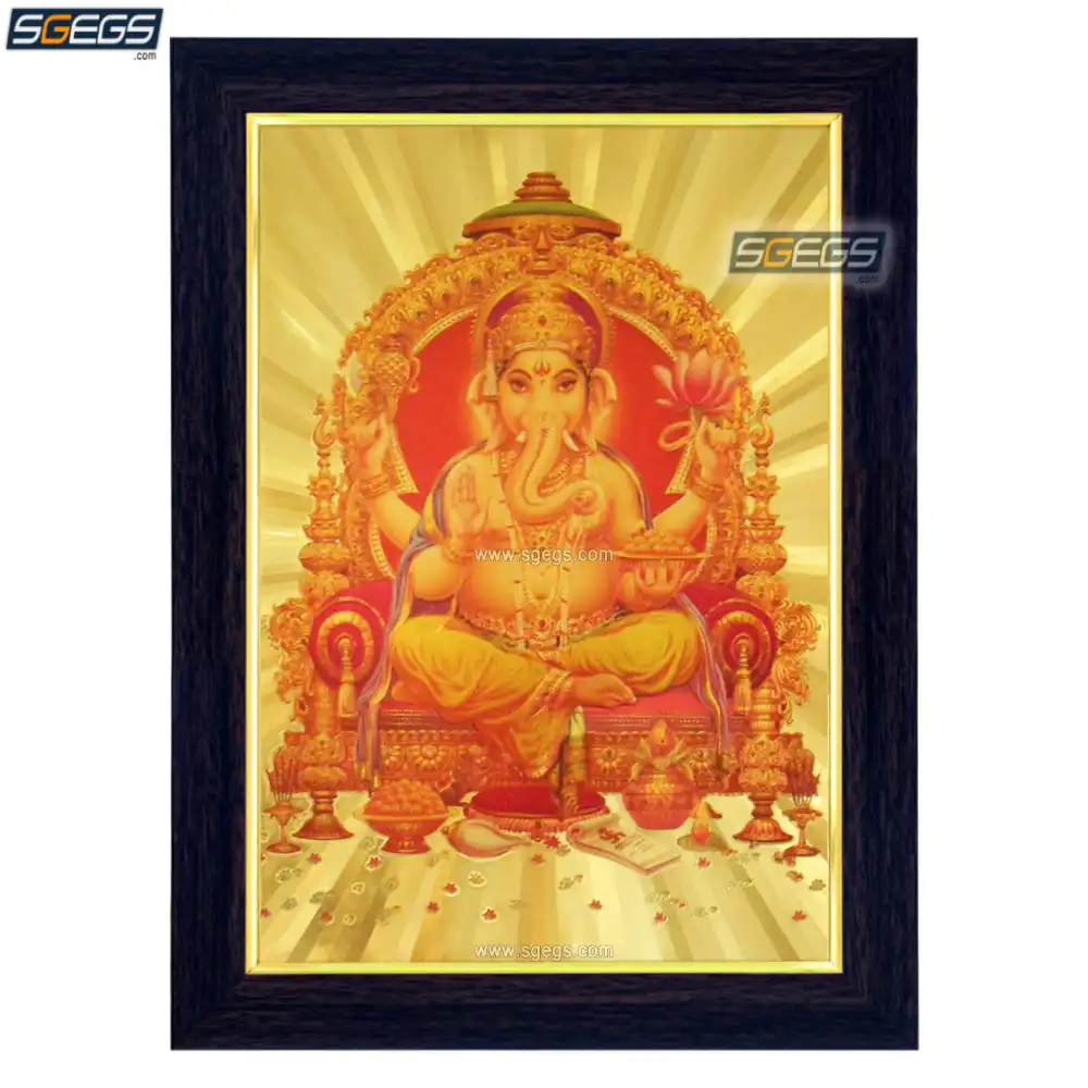 God Ganesha Photo Frame, Gold Plated Foil Embossed Picture Frame, Religious Framed Poster (SGEGS ID: 622)