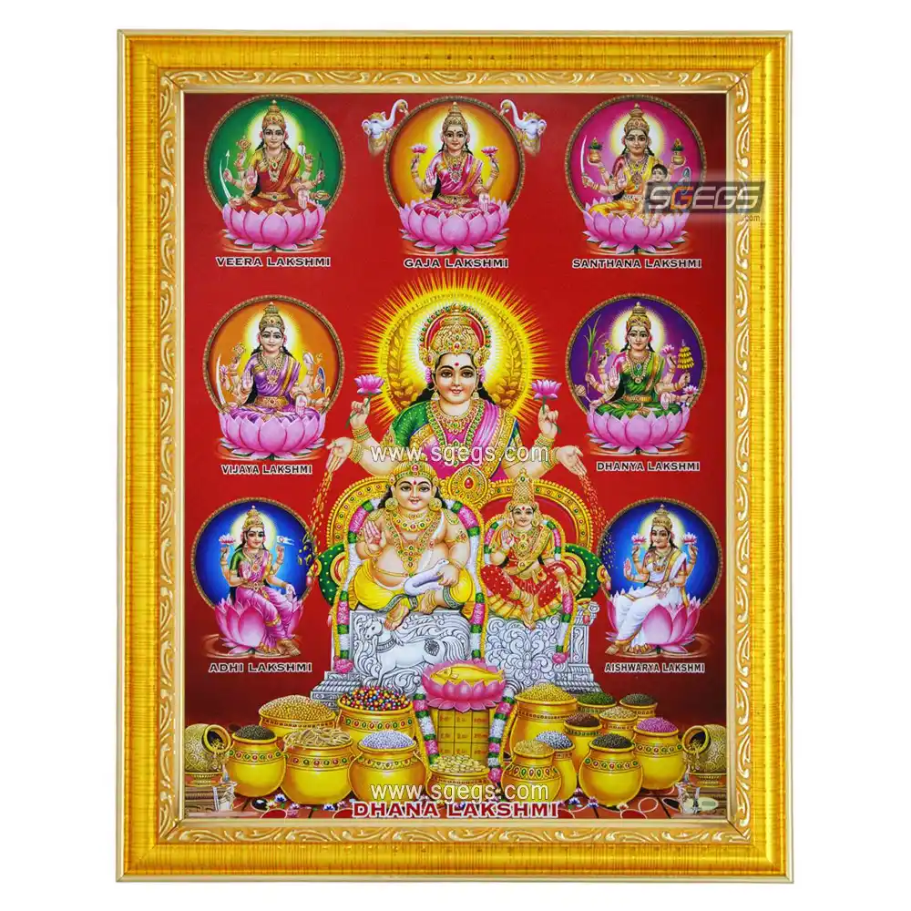 God Kubera Goddess Lakshmi with Ashta Lakshmi Photo Frame, HD Picture Frame, Religious Framed Poster (SGEGS ID: 2058)