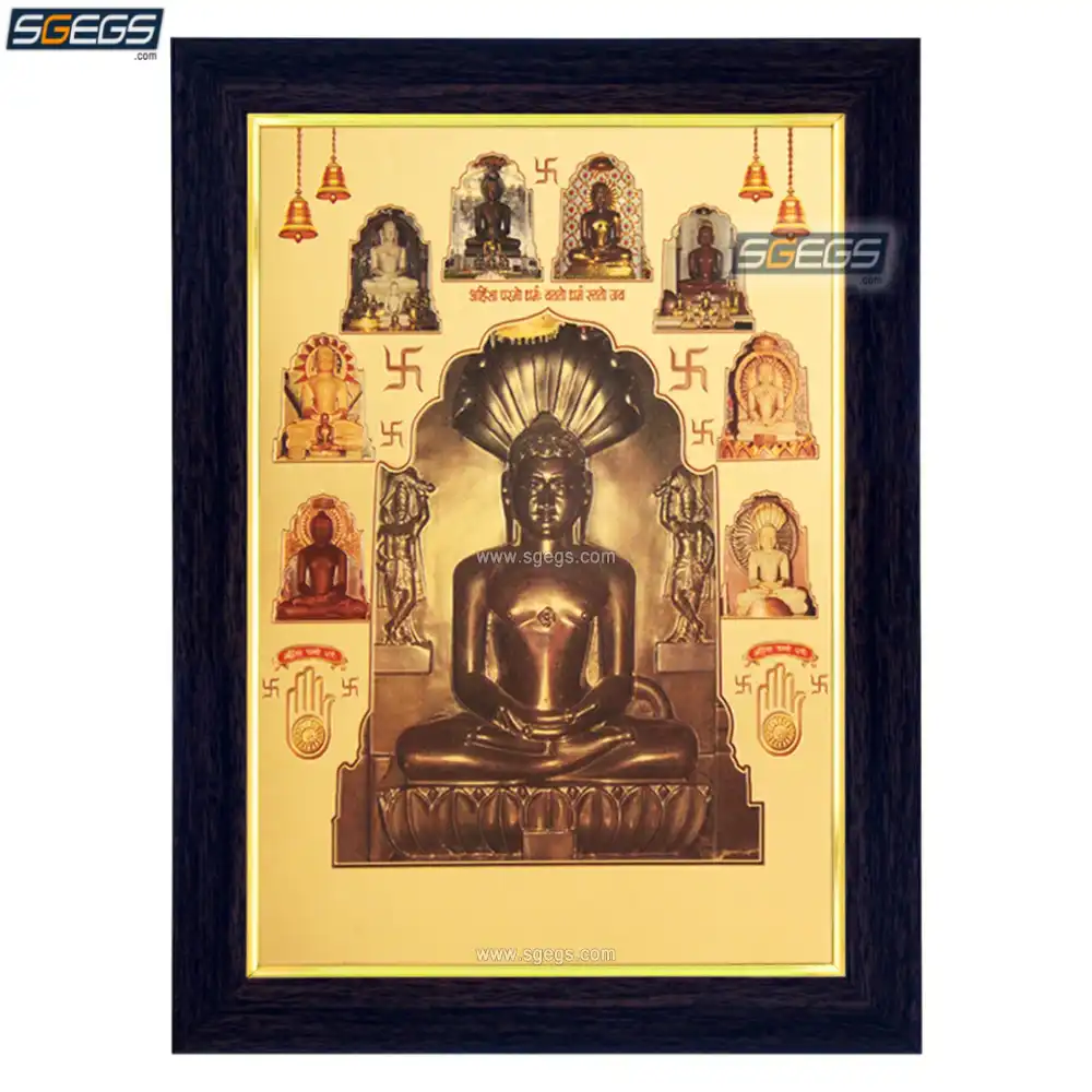 God Parshwanath Photo Frame, Gold Plated Foil Embossed Picture Frame, Religious Framed Poster (SGEGS ID: 1652)