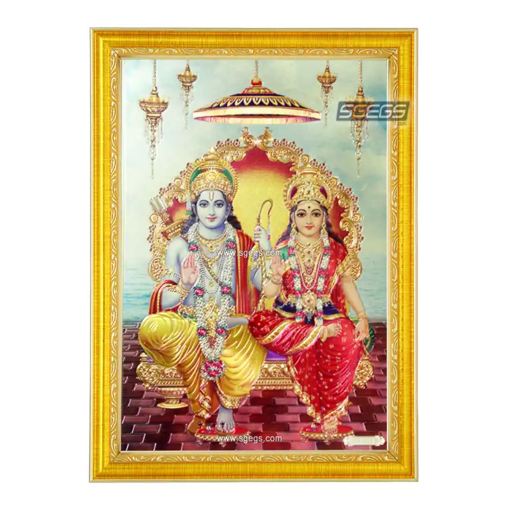 God Ram and Goddess Sita Photo Frame, Gold Plated Foil Embossed Picture Frame, Religious Framed Poster (SGEGS ID: 1848)