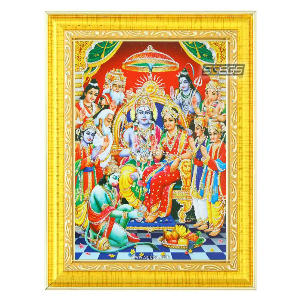 God Ram Darbar Photo Frame - Sri Ramar Pattabhishekam, Religious Framed Poster, Silver Zari Work Photo (SGEGS ID: 26393)