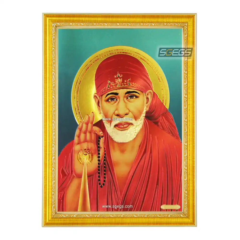 God Sai Baba Photo Frame, Gold Plated Foil Embossed Picture Frame, Religious Framed Poster (SGEGS ID: 890)