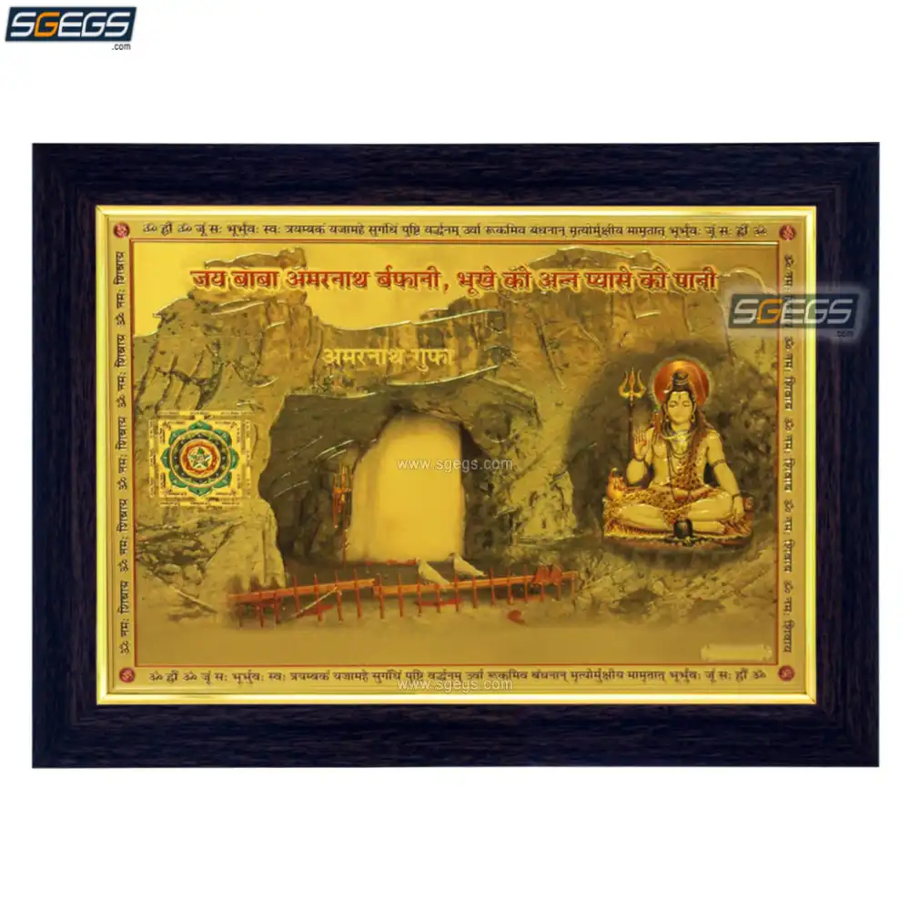 God Shiv and Amarnath Gufa Photo Frame, Gold Plated Foil Embossed Picture Frame, Religious Framed Poster (SGEGS ID: 1453)