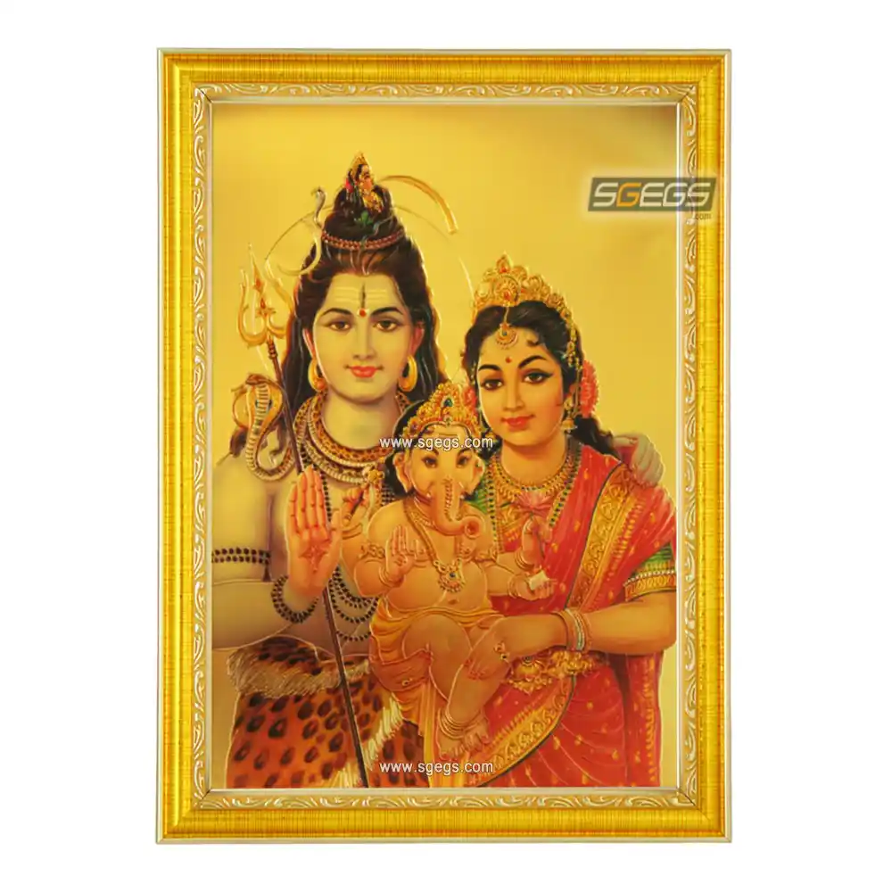 God Shiv, Goddess Parvati and God Ganeshji Photo Frame, Gold Plated Foil Embossed Picture Frame, Religious Framed Poster (SGEGS ID: 1398)