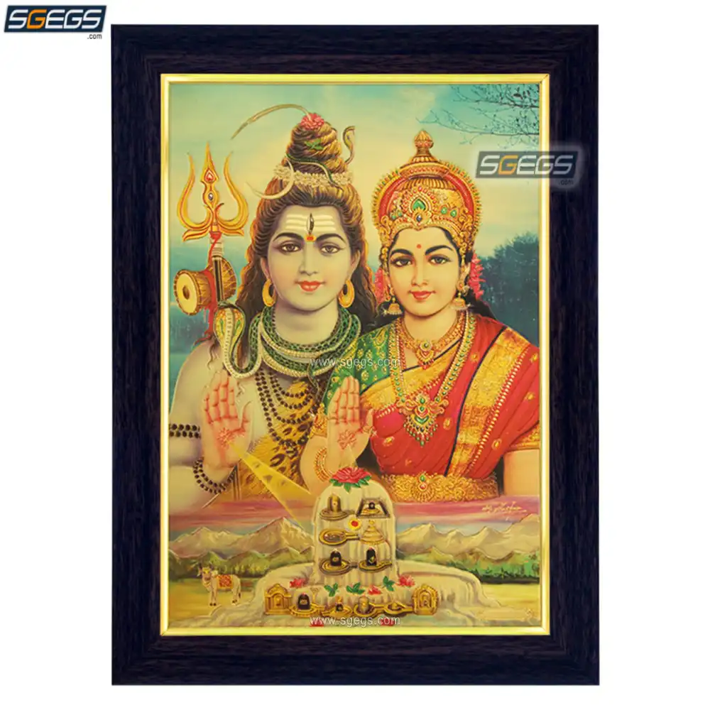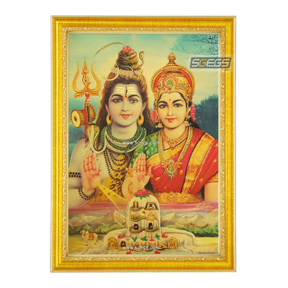 God Shiv Goddess Parvati with 12 Jyotirlingas Photo Frame, Gold Plated Foil Embossed Picture Frame, Religious Framed Poster (SGEGS ID: 1399)