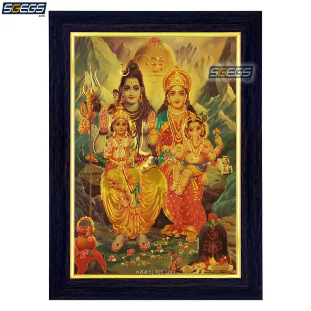 God Shiv Parivar Photo Frame, Gold Plated Foil Embossed Picture Frame, Religious Framed Poster (SGEGS ID: 1395) God Shiv Parivar Photo Frame, Gold Plated Foil Embossed Picture Frame, Religious Framed Poster (SGEGS ID: 1395)