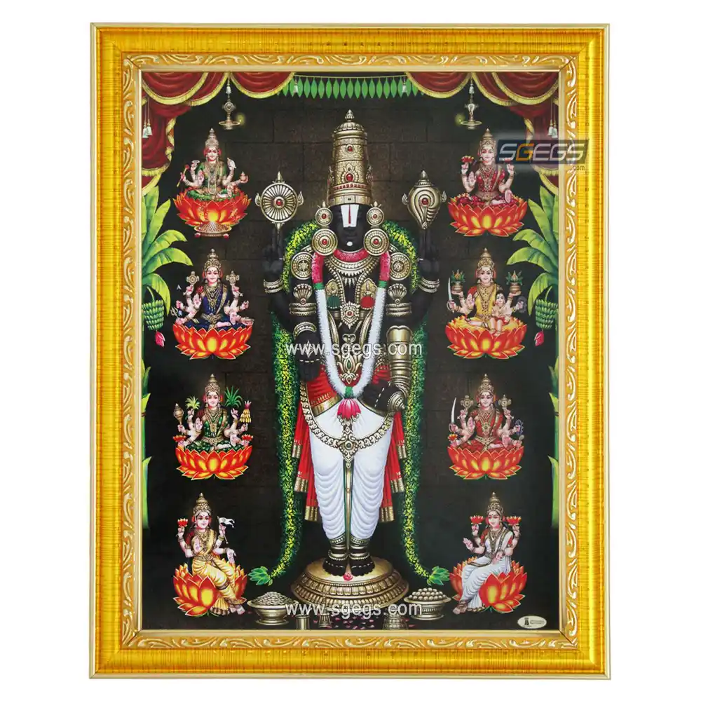 God Tirupati Balaji and Goddess Ashta Lakshmi Photo Frame, HD Picture Frame, Religious Framed Poster (SGEGS ID: 2041)
