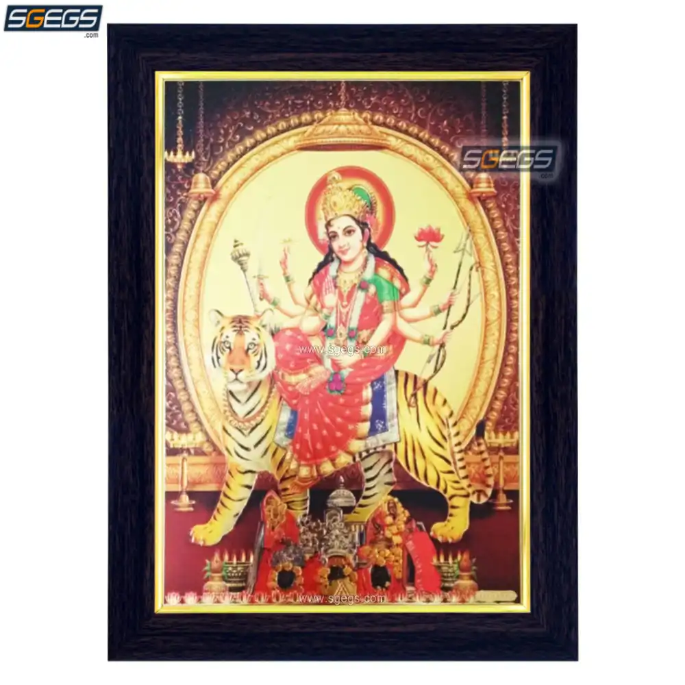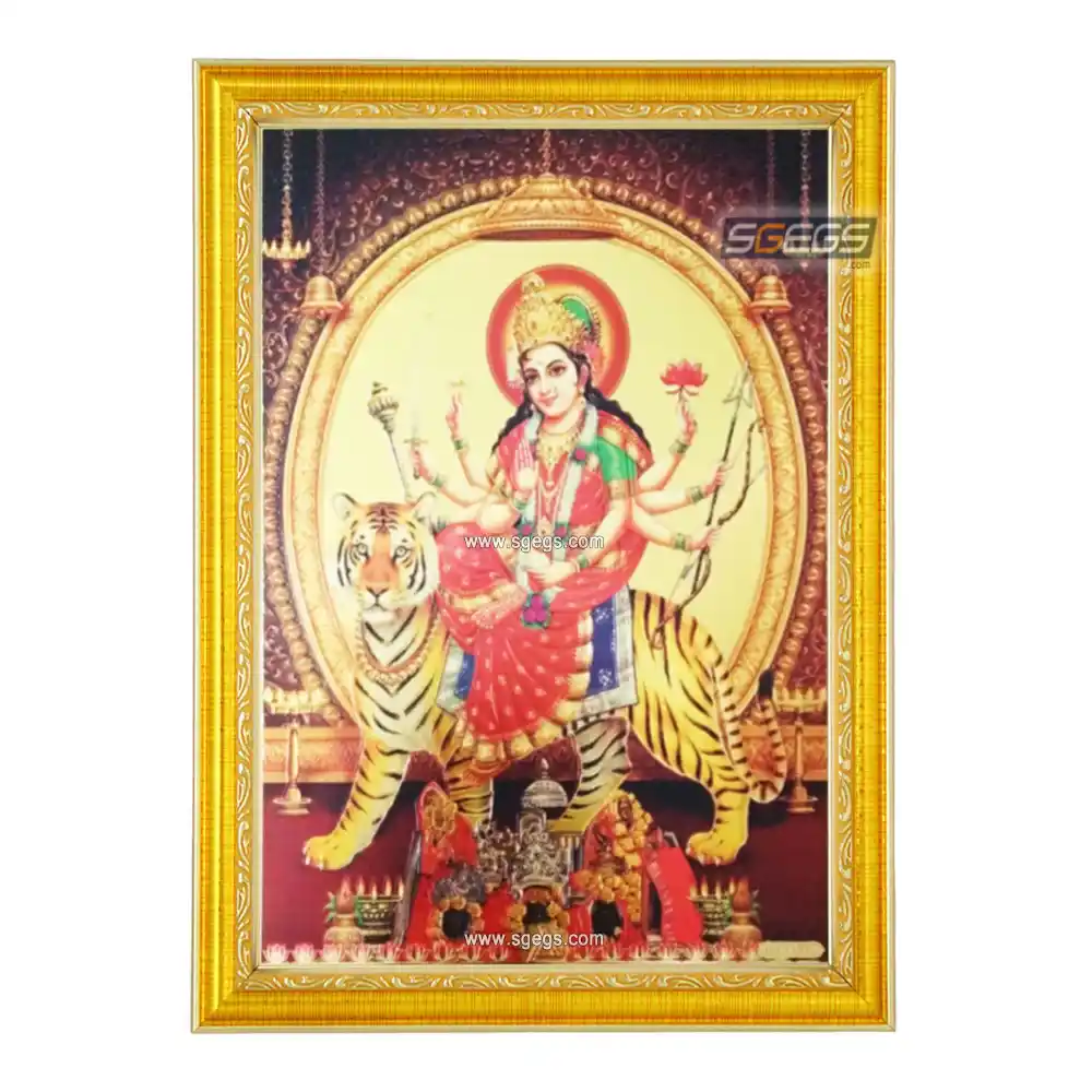 Goddess Ambe with Vaishno Devi Photo Frame Durga Maa, Gold Plated Foil Embossed Picture Frame, Religious Framed Poster (SGEGS ID: 1018) Goddess Ambe with Vaishno Devi Photo Frame Durga Maa, Gold Plated Foil Embossed Picture Frame, Religious Framed Poster (SGEGS ID: 1018)