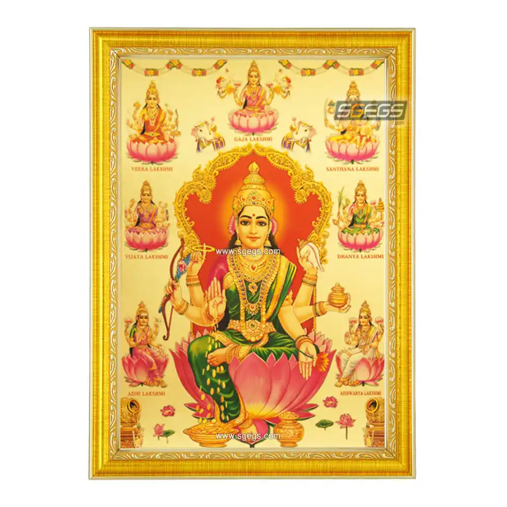 Goddess Ashta Lakshmi Photo Frame, Gold Plated Foil Embossed Picture Frame, Religious Framed Poster (SGEGS ID: 966)