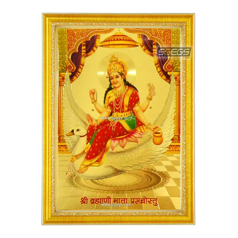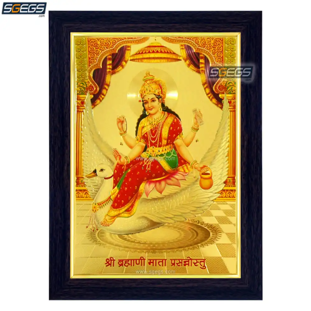 Goddess Brahmani Photo Frame, Gold Plated Foil Embossed Picture Frame, Religious Framed Poster (SGEGS ID: 1148) Goddess Brahmani Photo Frame, Gold Plated Foil Embossed Picture Frame, Religious Framed Poster (SGEGS ID: 1148)