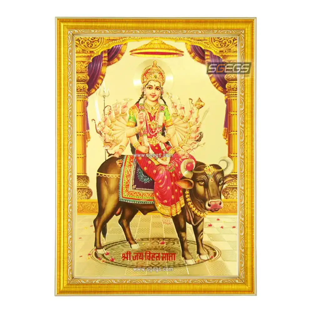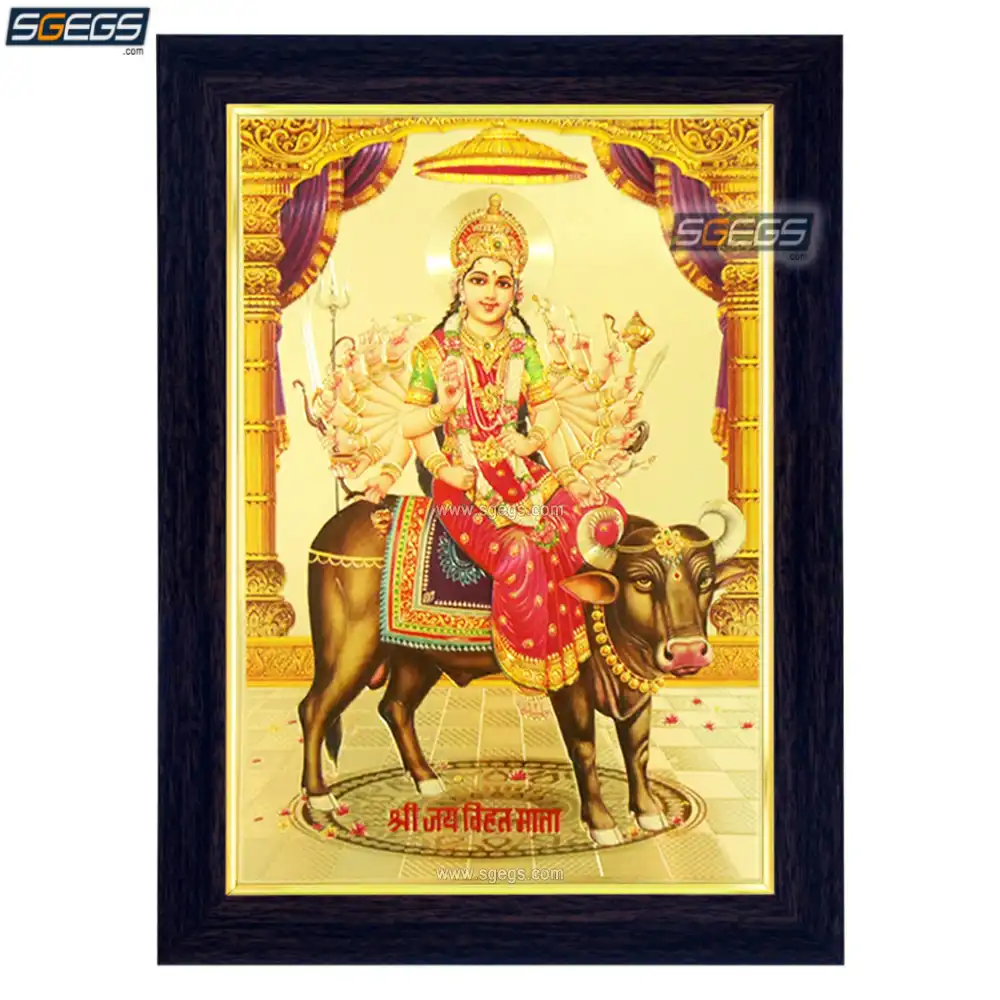 Goddess Vihat Photo Frame, Gold Plated Foil Embossed Picture Frame, Religious Framed Poster (SGEGS ID: 1150)
