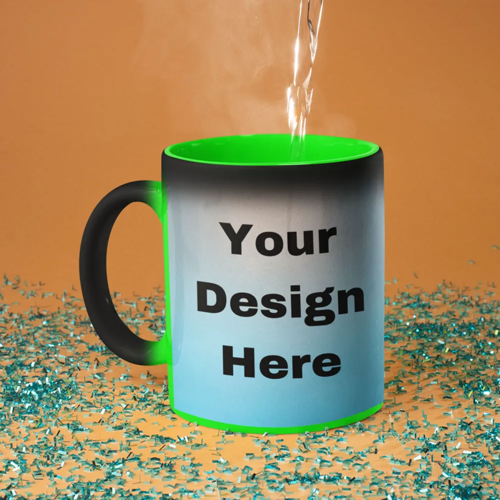 Send your design, photo, quote, and logo, and create a Green Customized Magic Mug that reveals your unique personality and sparks wonder with every sip.