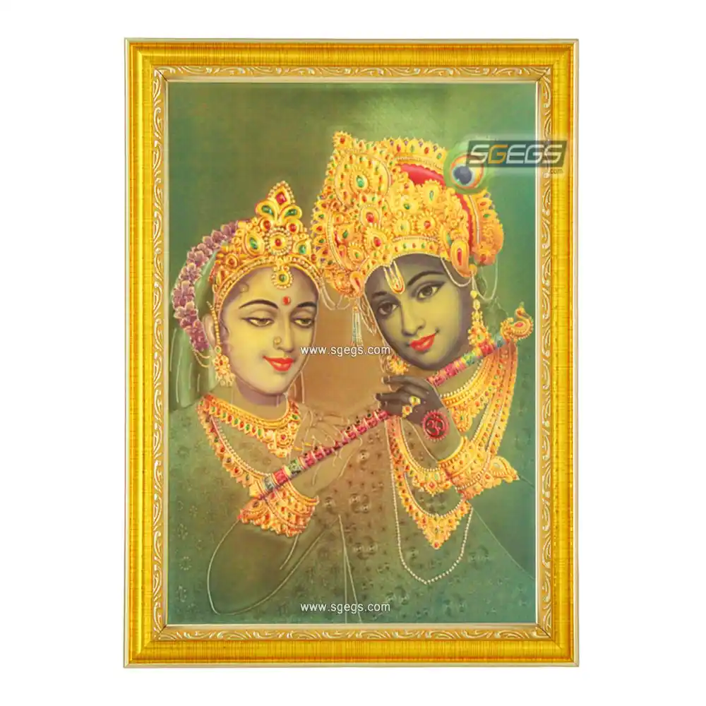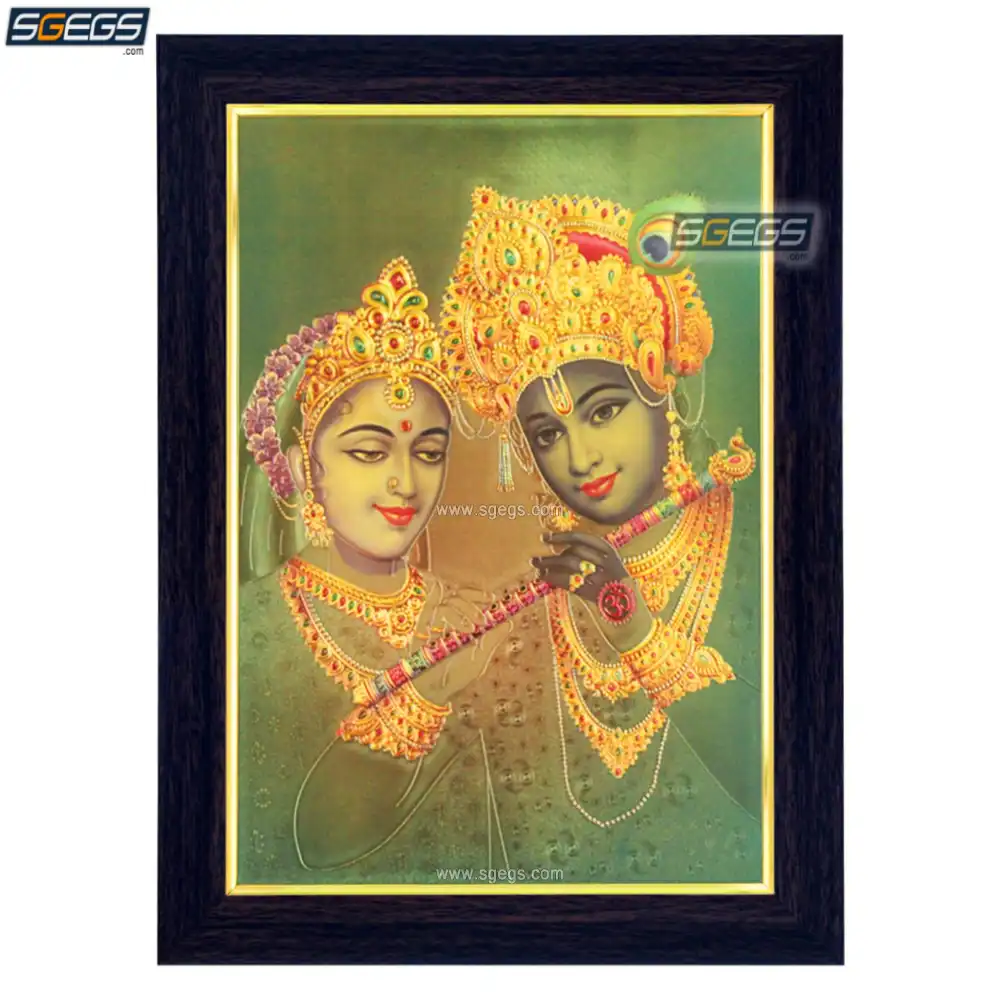 Radha Krishna Photo Frame, Gold Plated Foil Embossed Picture Frame, Religious Framed Poster (SGEGS ID: 1570)