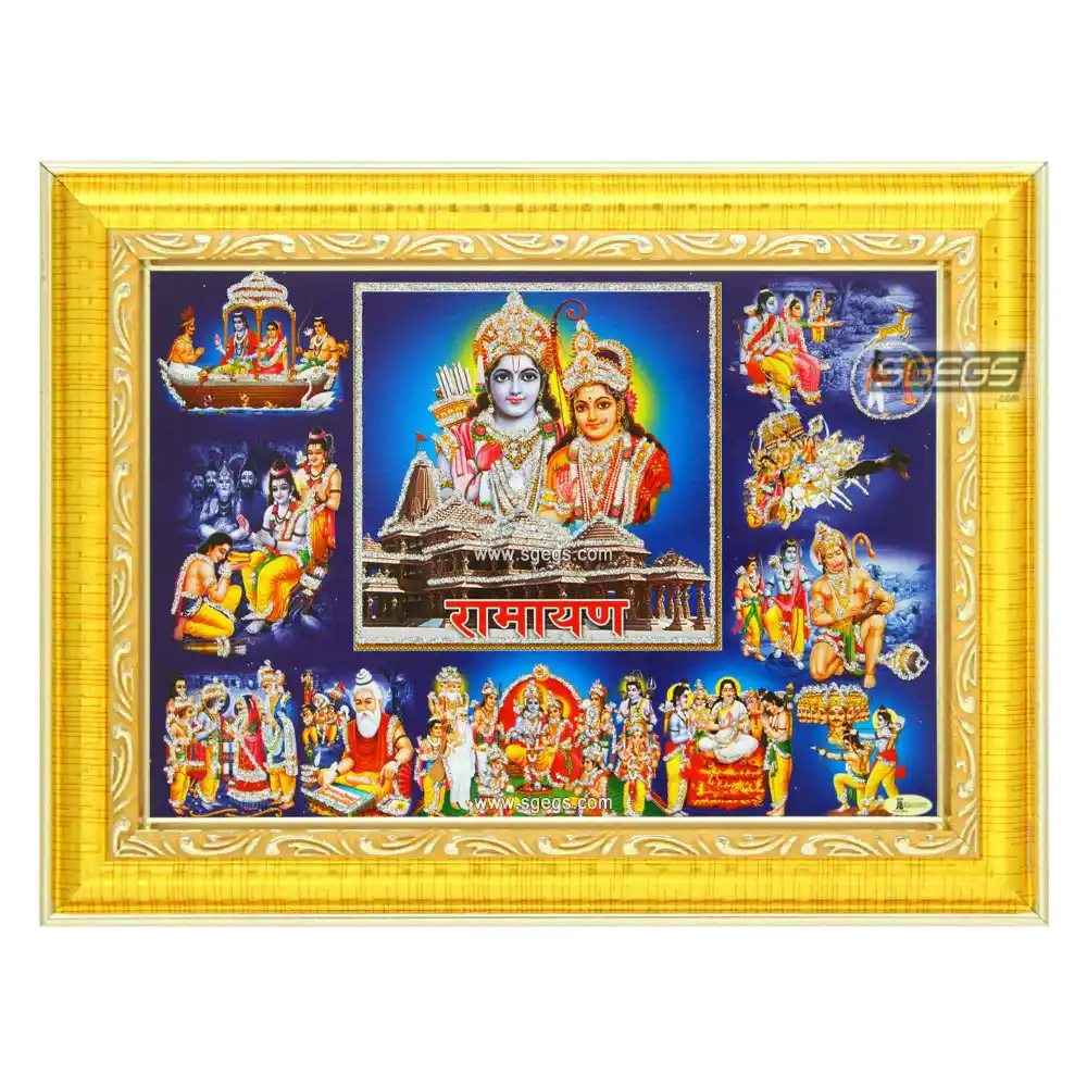 Ram Sita and Ayodhya Temple Photo Frame, Whole Ramayana in One Picture, Ayodhya Ram Mandir, Religious Framed Poster, Silver Zari Work Photo Ram Sita and Ayodhya Temple Photo Frame, Whole Ramayana in One Picture, Ayodhya Ram Mandir, Religious Framed Poster, Silver Zari Work Photo